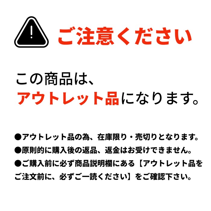 【アウトレット品をご注文前に、必ずご一読ください】●アウトレット品は、返品交換および、ご注文のキャンセルや変更を一切お断りしております。用途・サイズ・カラー等は十分にご確認、ご検討の上でご注文下さい。