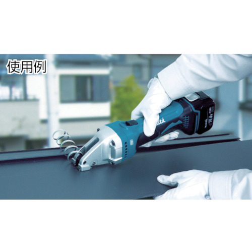 | 特長 | ●コードレスなので場所を選ばず鋼板の切断が可能です。 ●切断材の変形が少ない両刃式です。 ●バッテリー残量オートストップ・再起動防止付です。 |
