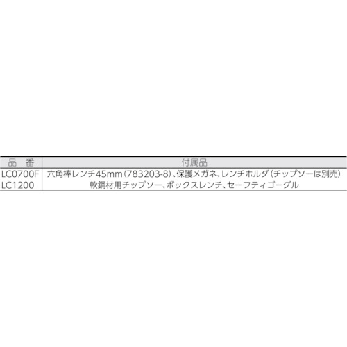 | セット内容/付属品 | ●六角棒レンチ5mm(783203-8) ●保護メガネ ●レンチホルダ |