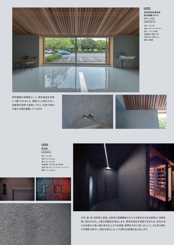 | 特徴 | ホルムアルデヒド放散等級:F☆☆☆☆ 天然由来の亜鉛が持つ質感や意匠性に注目した新しいコンセプトの製品『塗る亜鉛テクスチャー』が誕生しました。 まるで素材がそのまま塗られているような質感。 塗り重ねることで、見る角度によって変わる独特な陰影をつくり出し平面に立体的な奥行きを表現できます。 |